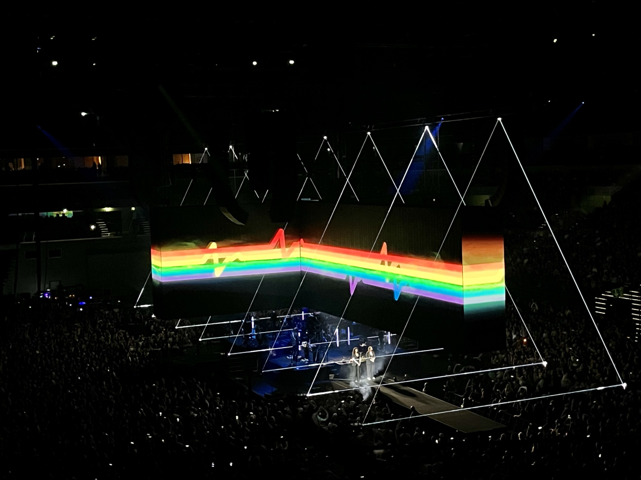 Eddig úgy tűnhet, nem is koncerten lettem volna, hanem egy nagygyűlésen. Pedig a zenei élmény még a látványnál is nagyobb volt. Waters zenésztársai nem kispályás hobbimuzsikusok, hanem egy világválogatott, ahogyan a hangosítók és a látványért felelős személyzet is. Vasárnap este a koncertélmény magasiskoláját láthatta és hallhatta a publikum, amit csak tetézett a sok jó Pink Floyd klasszikus és Roger Waters dal. A szokásos elemek persze helyet kaptak, mint a repülő birka vagy a repülő disznó, amik a teljes nézőteret körbeutazták a levegőben.